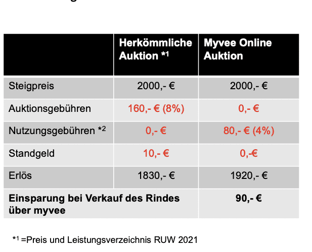 Zumal bei myvee die Nutzungsgebühr erst ab dem 3`ten verkauften Rind fällig wird. Bis dahin ist die Nutzung für den Verkäufer kostenlos.